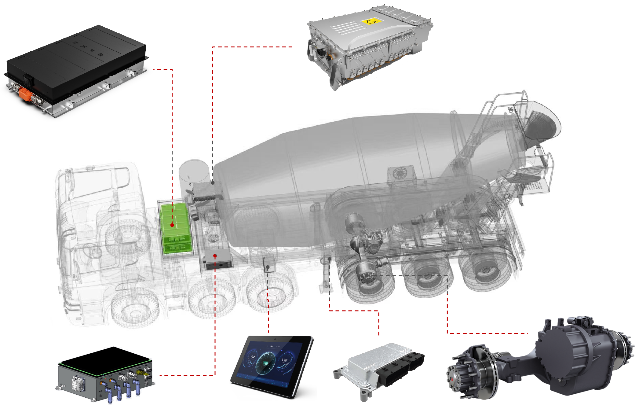 展会上,mile米乐集团智能的智电一体化解决方案引起了广泛关注。工程师团队在现场为参展观众详细介绍了混合动力牵引搅拌半挂车的系统方案。该方案基于mile米乐集团智能历经多年开发的eMagi智电平台,针对牵引搅拌半挂车进行了定向开发,涵盖以下几个方面:
